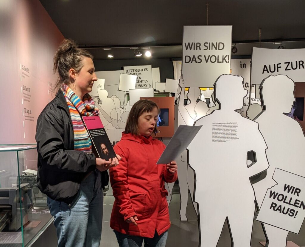 »Ich finde es schön, dass die Andreasstraße ein Ort ist, der für alle Menschen offen ist. Was ich besonders mag, sind die Comics in der Gedenkstätte. Ich male selbst Bilder und finde, Bilder kann man oft besser verstehen als komplizierte Sätze. Seit Kurzem gebe ich auch Führungen in der Andreasstraße. Vor meiner ersten Führung hatte ich richtiges Lampenfieber. Für mich ist das ein aufregendes Projekt, weil ich in der Andreasstraße viele interessante und freundliche Menschen treffe. Wir sind ein tolles Team und unterstützen uns gegenseitig. Was für mich auch wichtig ist: Ich werde gut bezahlt, wenn ich eine Führung gebe. Eine Führung vorzubereiten ist ja schließlich auch viel Arbeit.«